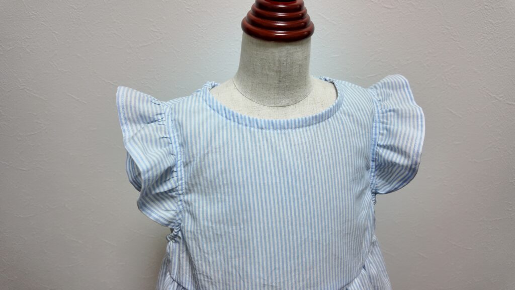 肩フリルが可愛いキッズブラウスの型紙と作り方をご紹介します。