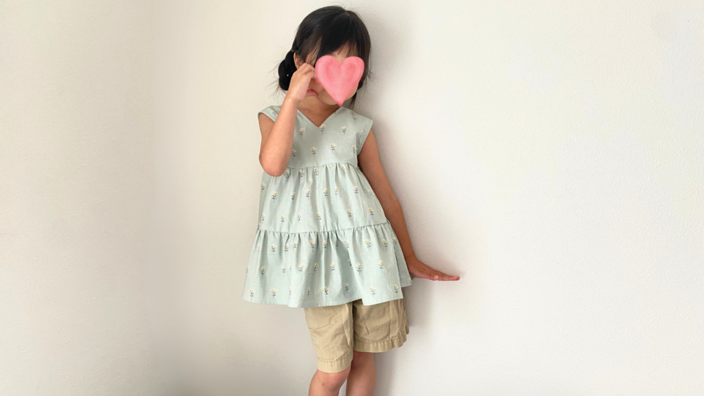 たっぷりギャザーでふわっと広がる、ティアードシルエットが魅力のキッズブラウス。